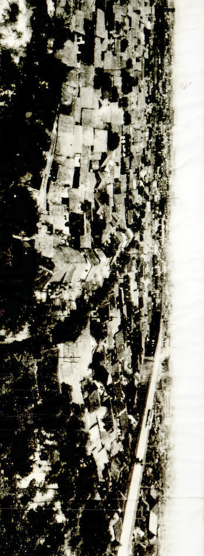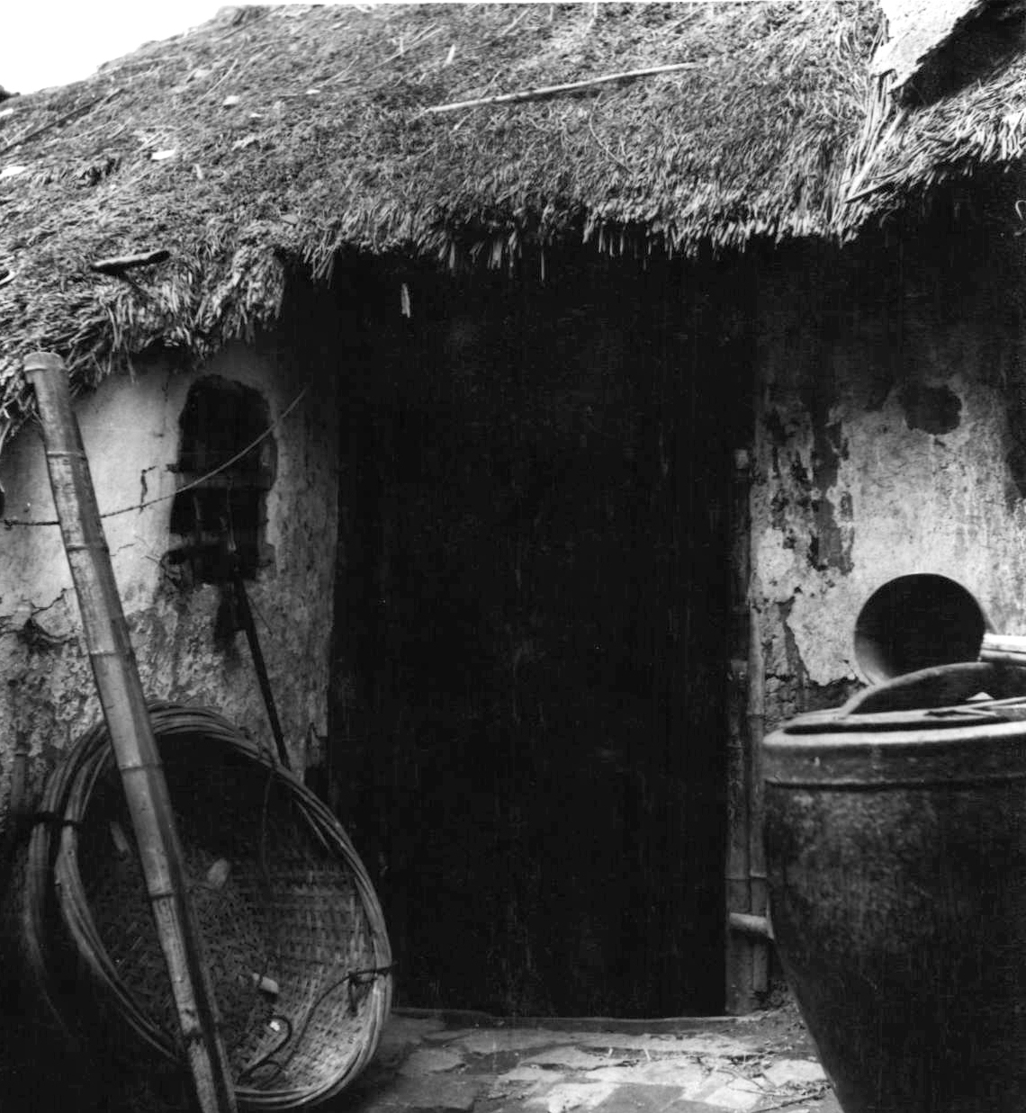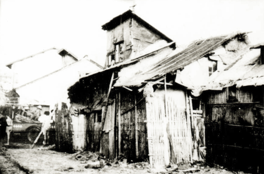 1950年代的蕃瓜弄,矮平房用芦席和稻草盖顶。