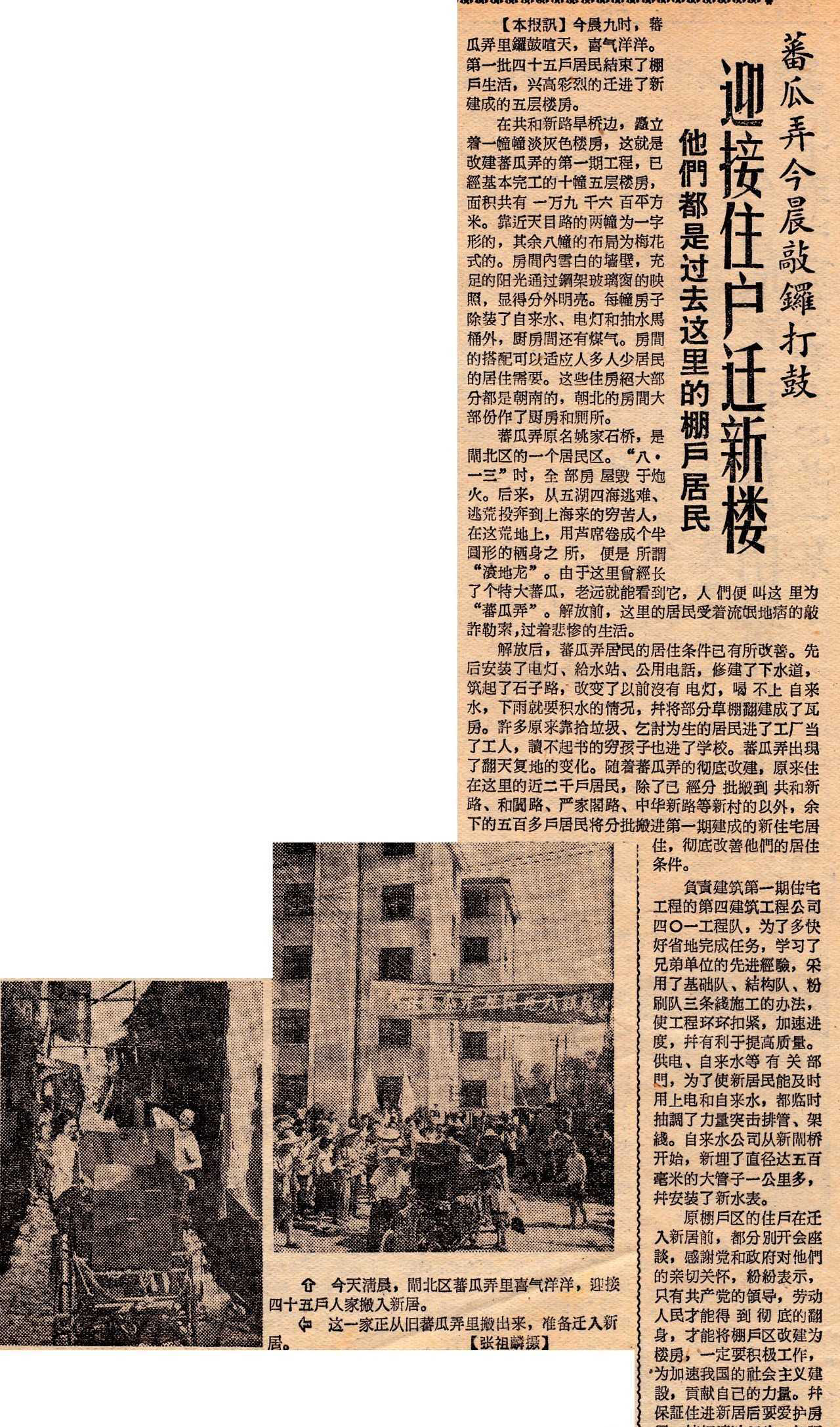 1964年7月,蕃瓜弄第一期新公房竣工,第一批居民欢天喜地搬入新居。上海的众多媒体报道后,引来了络绎不绝的参观者,成为当时闸北乃至上海的标志性地标之一。