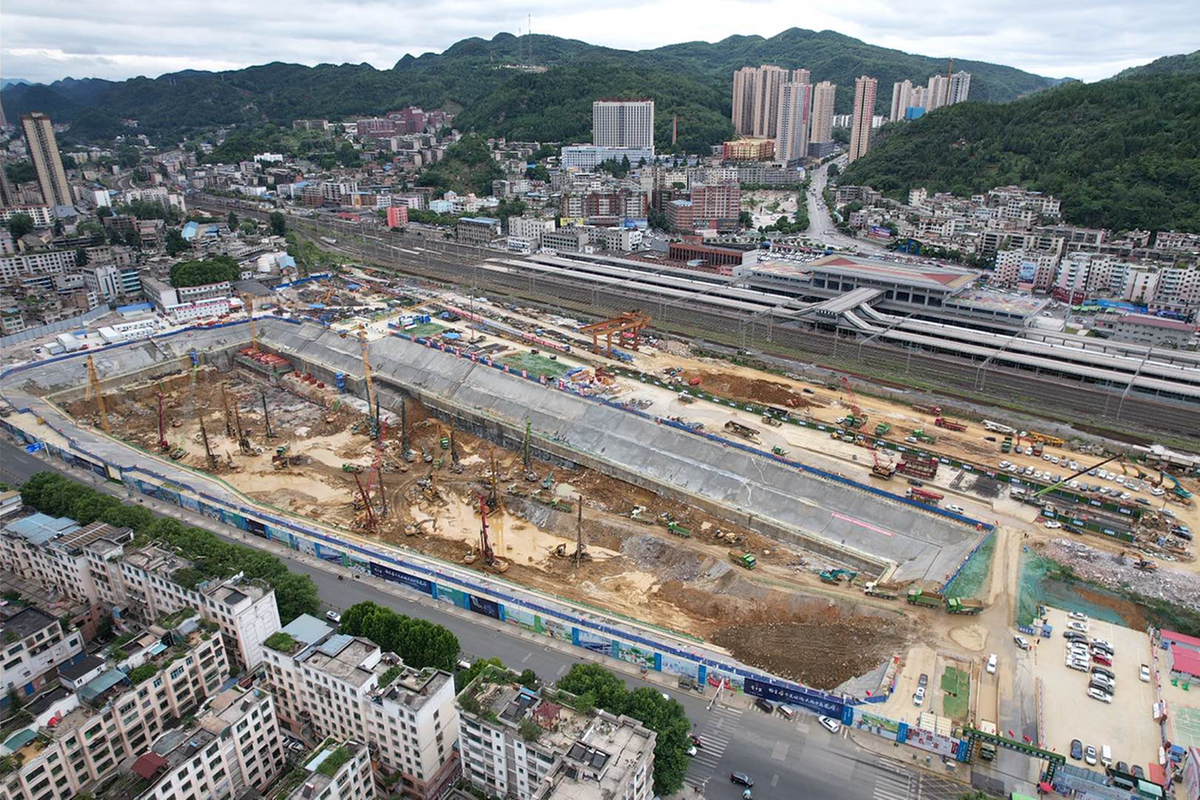 近日,由中铁八局三公司负责施工的安六铁路六盘水站站前广场建设项目(新建高铁站站前广场及商业综合体工程)现场,近百台机械昼夜不歇,四百余名工人连续奋战。