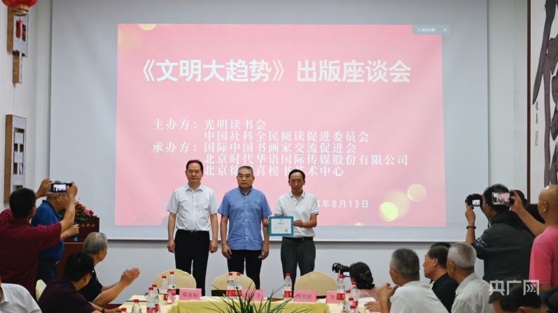 央广网北京8月14日消息(记者王进文)8月13日,《文明大趋势——为什么说21世纪是中国世纪》新书出版座谈会在北京举办。活动由光明读书会、中国社科全民阅读促进委员会主办,50多位来自理论界、学术界的专家学者和嘉宾出席座谈会。