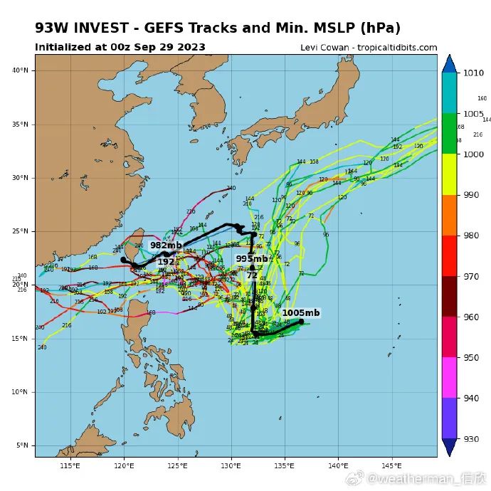 昨天下午日本气象厅将菲律宾东边的低压(原扰动93W)给出预生成提示,未来24小时会发展为今年的14号台风“小犬”。这个台风后期路径变数很大。台风处于副热带高压的包裹下,北方可能还有冷空气南下,使得引导气流不明确。最终是北上转向?还是西行登陆我国?后期需继续观察。