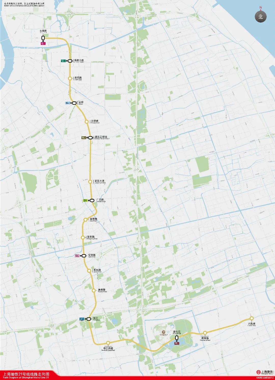 21号线一期工程是上海市城市轨道交通第三期建设规划中重要的南北向径向市区线,全长约28公里,设18座车站。其中康南路站、广兰路站、浦东足球场站、凌河路站、东靖路站5站进入结构施工阶段,申江南路站、张江站、康南路站、杨高北路站4站基坑开挖施工。军民路站~康南路站区间上行线有望于10月底实现贯通,下行线于8月31日正式始发,目前正在正常推进阶段。预计年底前全线车站完成围场,全面进入主体土建施工阶段。