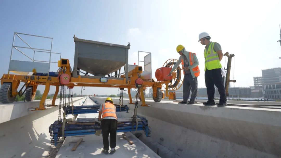 17号线西延伸自17号线东方绿舟站(不含)向西延伸,全长约6.6公里,设车站1座。目前17号线西延伸工程西岑站主体混凝土结构已封顶,二次结构施工完成,即将开始装修安装施工;高架区间下部结构全部完成,全线U梁架设已超80%;拦路港节点桥和跨G50节点桥挂篮悬臂浇筑节段顺利推进;轨道工程日前通过首件制验收,即将开始正式施工。