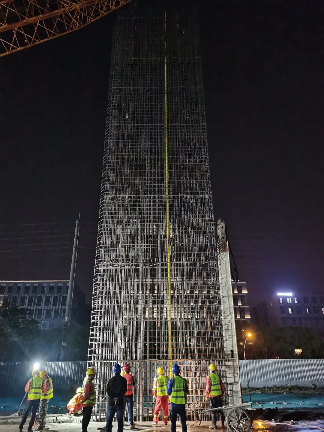 12号线西延伸沪松公路站正在挑灯夜战地墙作业施工