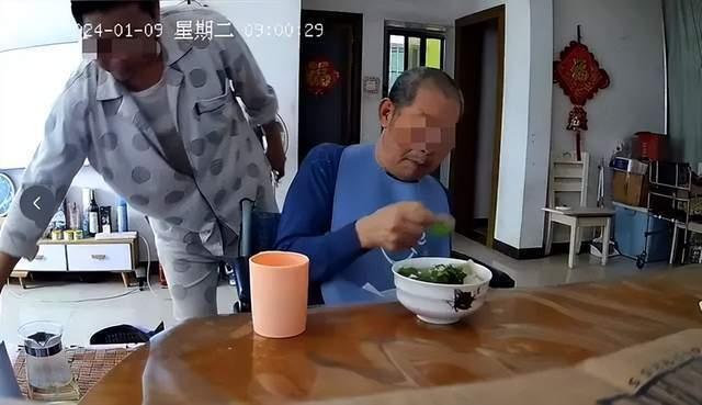 监控显示:保姆在旁倒水时,老人吞下肉丸