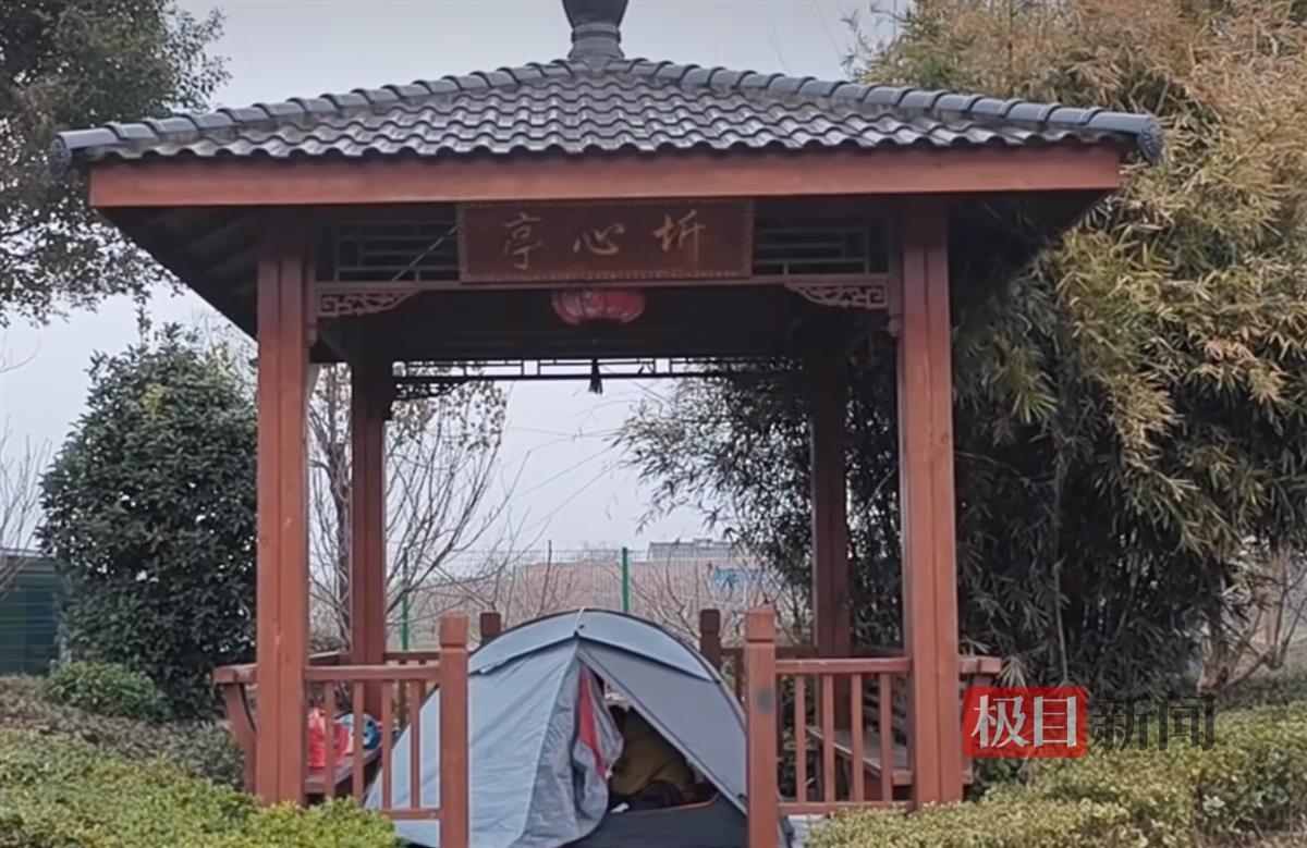骑行第五天,下午3时许,因为下雨骑行比较慢,我们没有按照计划到达酒店,而是到达了附近的一个村——东序村(位于江苏省常州市武进区洛阳镇)。跑了一天,雨水把我们的衣服和帽子都弄湿了,我跑到附近的村委会询问能否有一个地方露营。村民给我指了附近的一个亭子——虽然四面漏风,但好歹地上是干燥的。