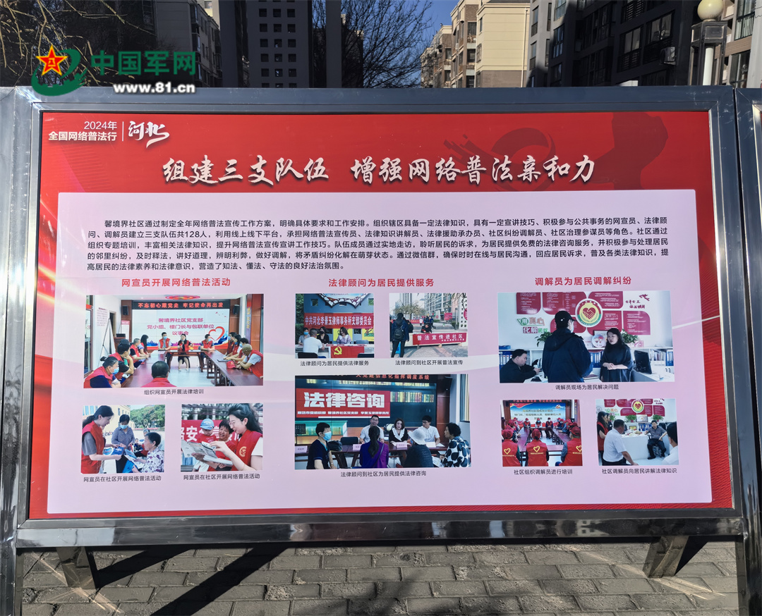 中国军网廊坊3月1日电(记者张硕)3月1日上午,“全国网络普法行·京津冀站”活动来到廊坊广阳区馨境界社区。