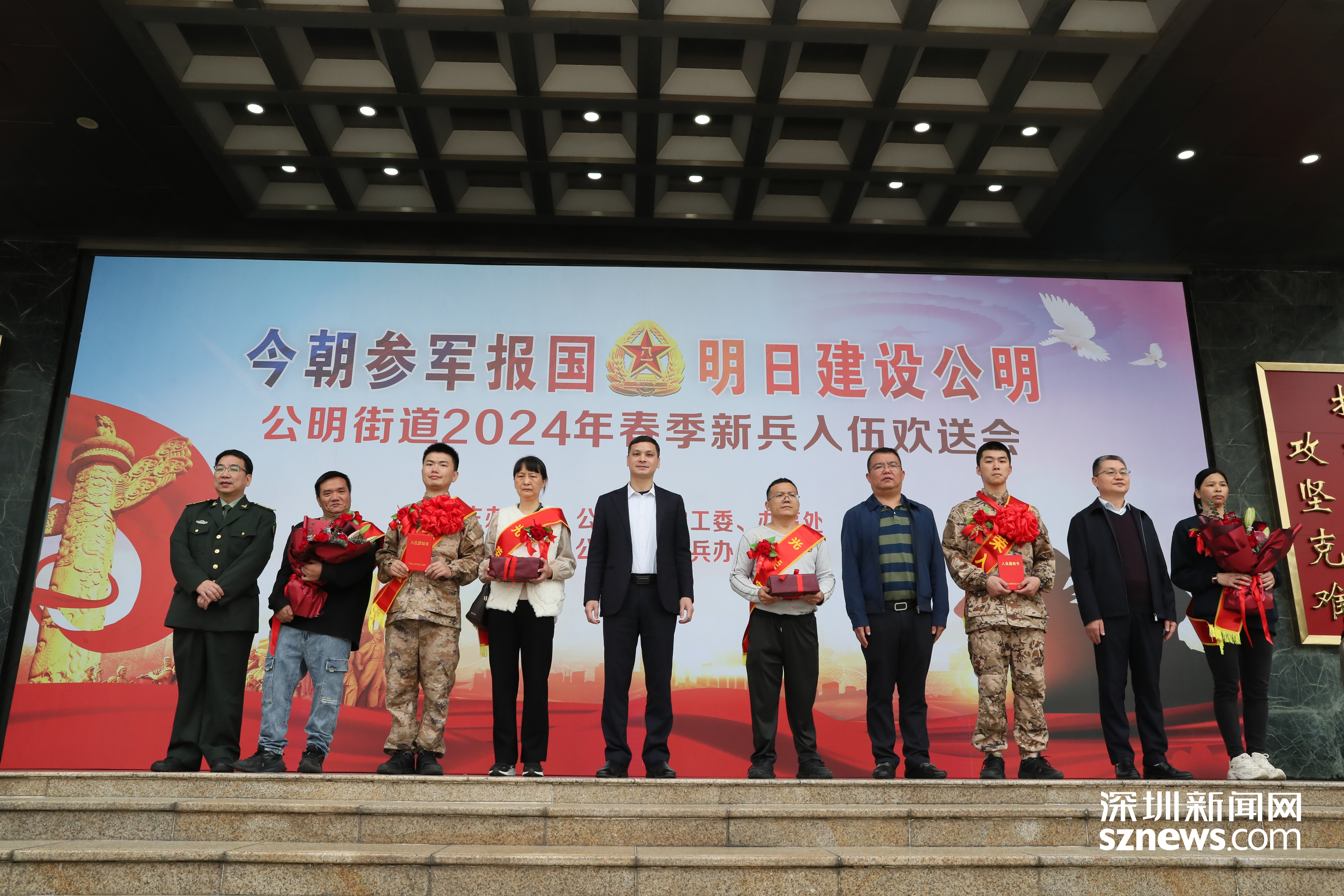 公明街道党政相关领导、街道征兵办工作人员、各社区负责人、家属代表参加欢送大会。