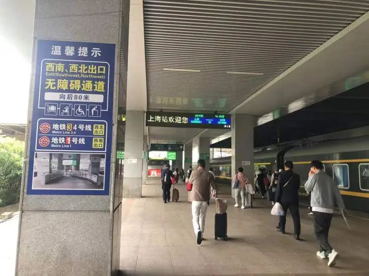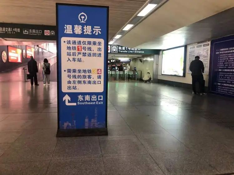 上海站东南出口,可以免二次安检乘坐地铁一号线。