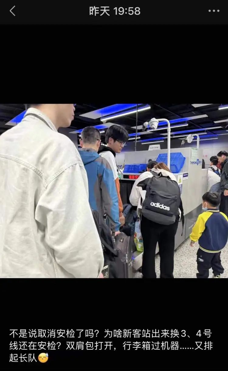 “我到现在也没有搞清楚,为什么新闻上说,上海站和地铁三、四号线换乘可以免二次安检,而且可以节约路程、时间,但我昨天下了火车,跟着人潮走了一长段路,大家还又经历了一次安检。因为刚好是返沪高峰,大部分人又都携带行李箱,地铁三、四号线安检处排起了近20米的长队,有些小包也还需要开包检查,所以通行速度比较慢。”房女士告诉记者。