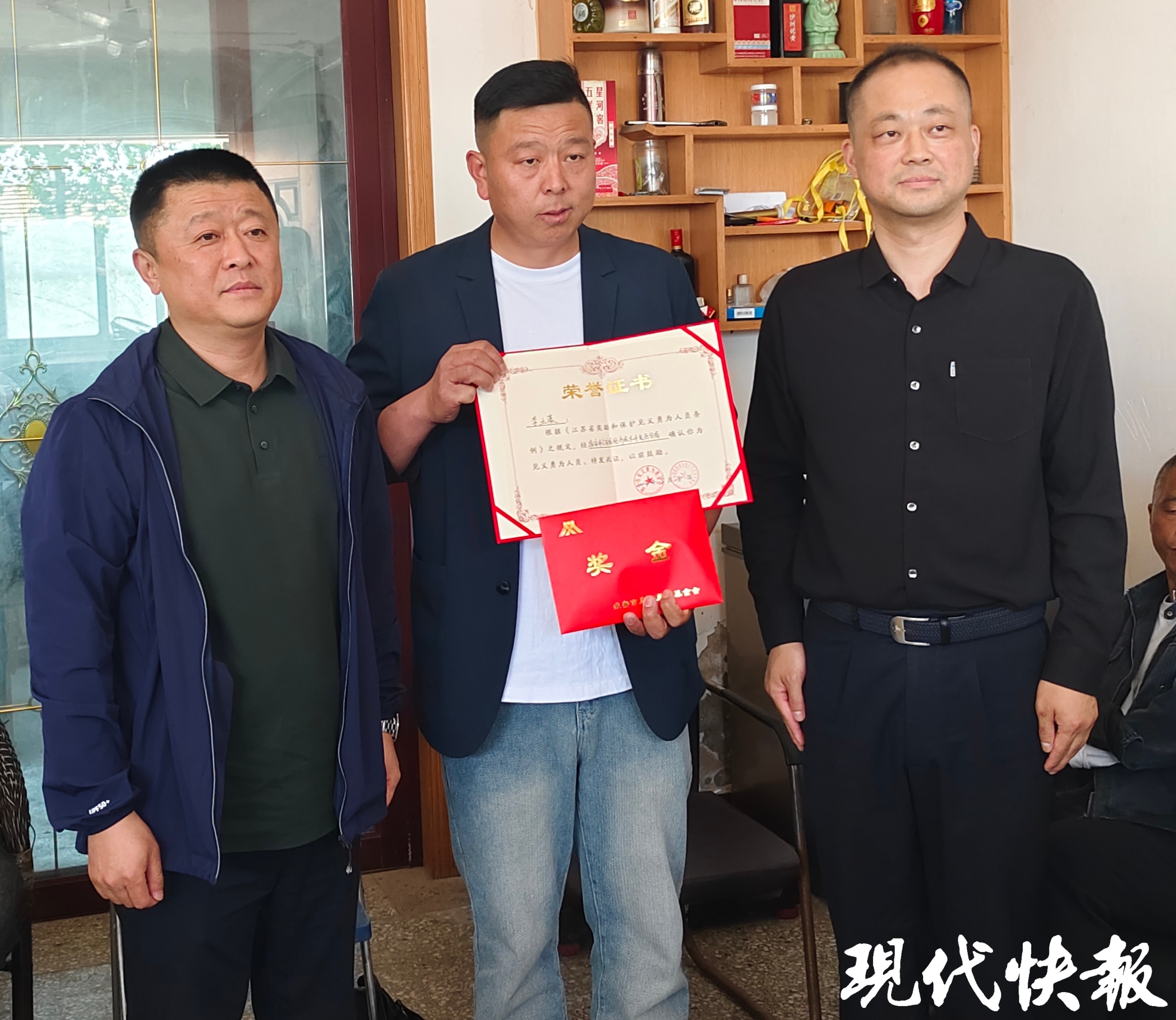 现场,李玉豪的父亲李恩嵇从淮安市见义勇为基金会和淮安经开区见义勇为协会工作人员手里接过奖金和证书,高兴地说:“今天帮李玉豪代领这份荣誉,我们全家感到非常自豪,希望以后李玉豪继续发挥见义勇为的传统美德。”