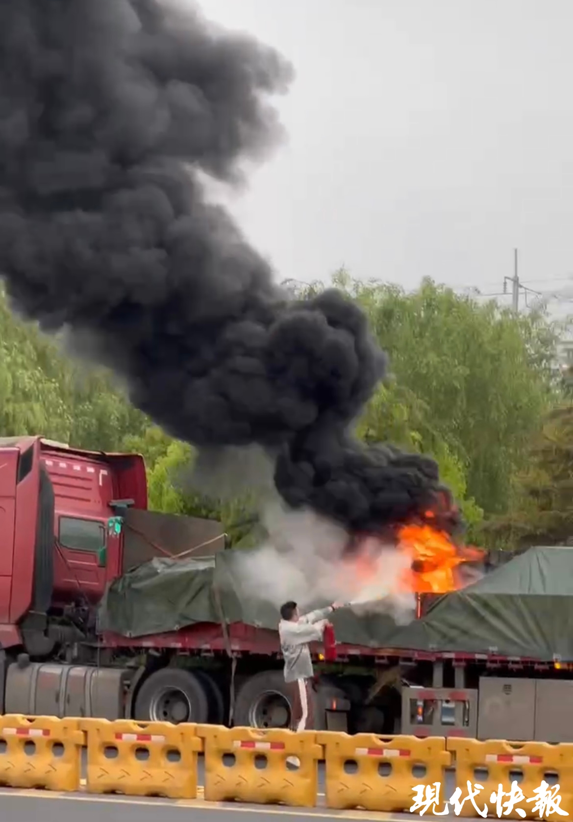 记者了解到,现场还有一辆淮安牌照的面包车,下来了几个热心群众也参与到了报警和运送灭火器的行动中,目前警方已经找到车主,下一步也将当面对他们表达感谢。