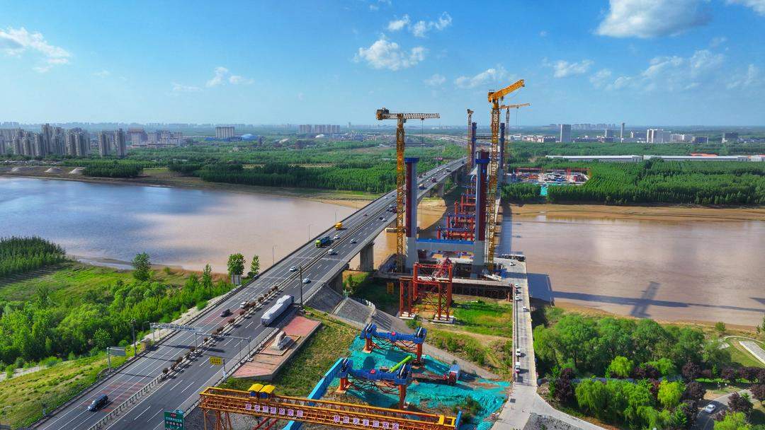 据介绍,京台高速公路齐河至济南段改扩建项目是全国首条“6改12”高速公路改扩建工程,项目全长23.999公里,起自京台高速与济聊高速交叉的晏城枢纽,经德州市齐河县,济南市槐荫区、市中区,止于京台高速和济广高速、济南绕城高速公路南段交叉的殷家林枢纽;采用双向十二车道高速公路(既有老路维持双向六车道,黄河特大桥路段左侧(下游)分离新建双向六车道,其余路段两侧各分离新建单向三车道)标准建设,设计速度120公里/小时。其中由山东省路桥集团承建的黄河特大桥是项目控制性工程,为黄河下流最大跨径桥梁。目前大桥总体已完成57.0%,今年总体完成85%。