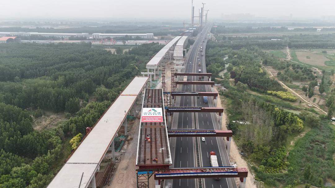 近日,由山东高速集团投资建设的京台高速公路齐济段改扩建工程小角度跨越既有道路钢混组合梁首联滑移顺利完成,这是国内首次将单方向车流以小角度高架桥形式跨越既有高速,为高速公路改扩建项目提供了全新的思路。