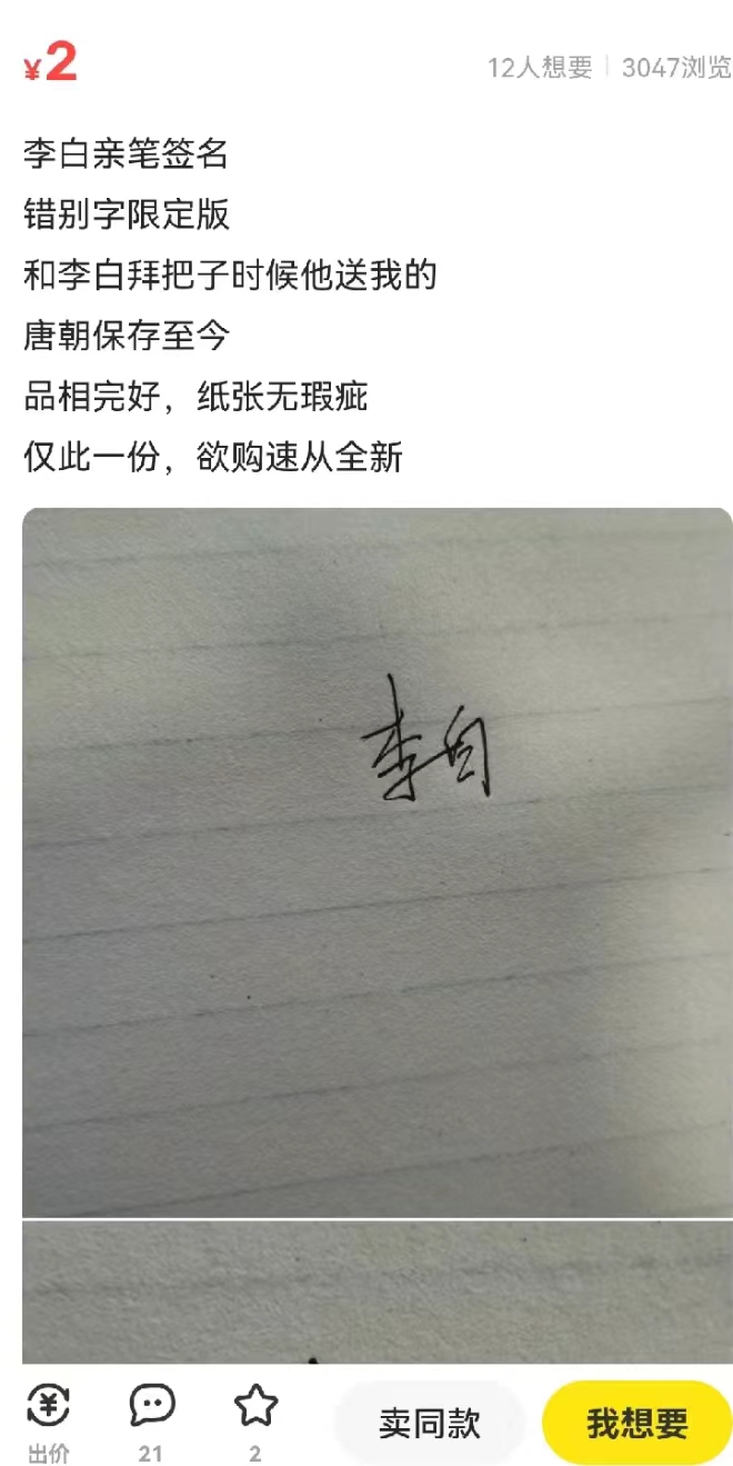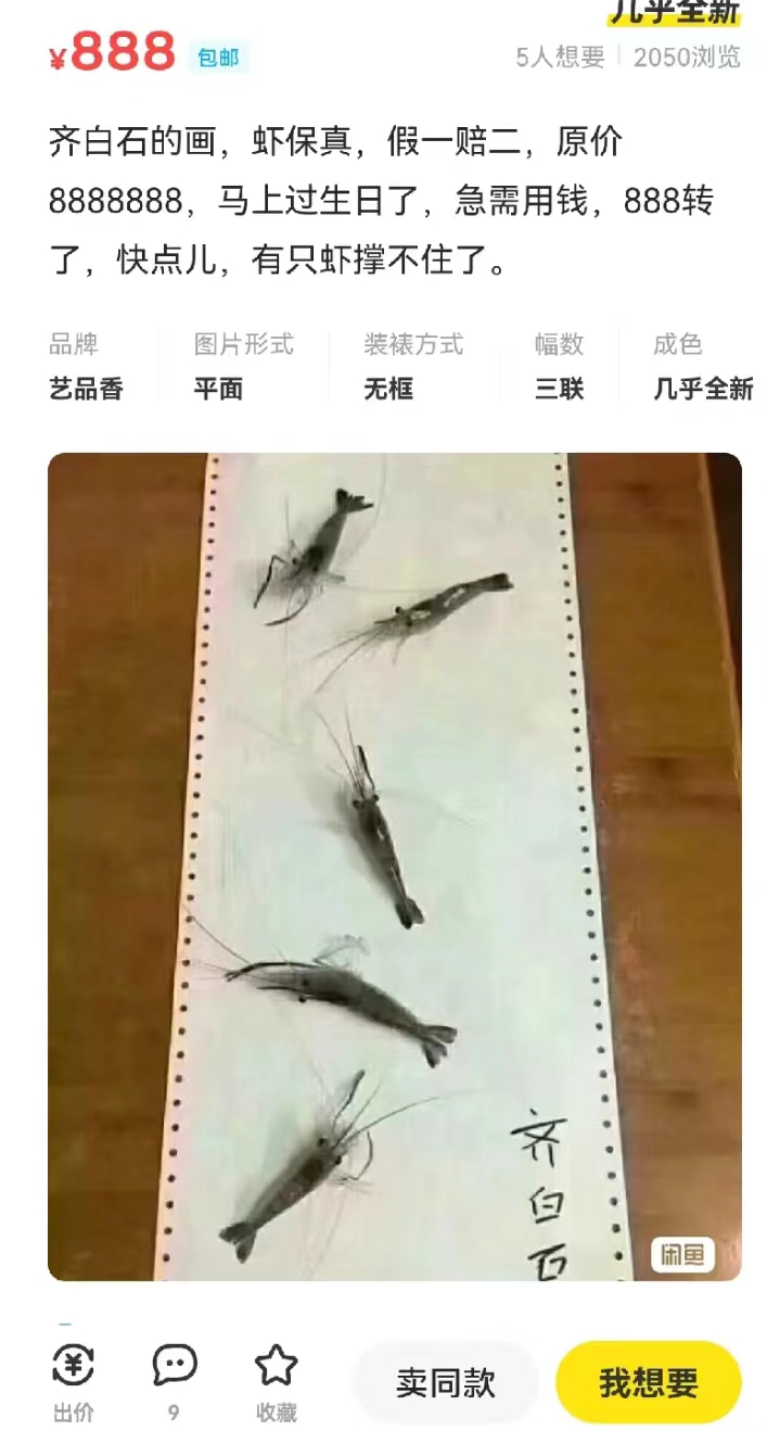 也有人在闲鱼上挂售“名家画作”不过定睛一看,此齐白石非彼齐白石,但似乎博主说的话也并非全都不属实。