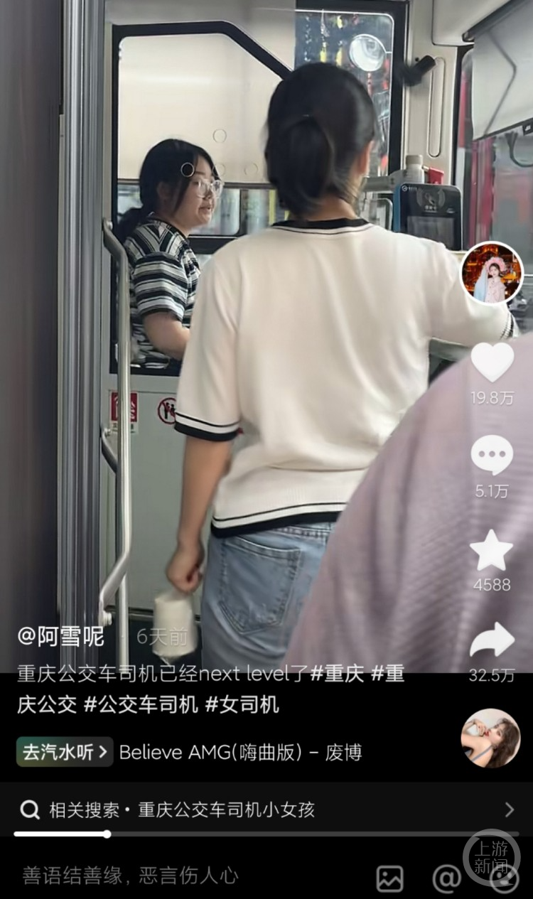 “重庆公交车司机已经nextlevel了!”“好像开公交车的女学生。“厉害了!小孩姐!”……近日,网友“阿雪呢”在社交平台上发布了一段她拍摄的重庆“00后”公交车司机视频。视频中,一位坐在公交驾驶室的年轻女司机,身穿休闲T恤,工作状态很放松,这种青春松弛感引发众多网友关注,不少网友亲切地叫她“小孩姐”,话题更是冲上热搜第一。