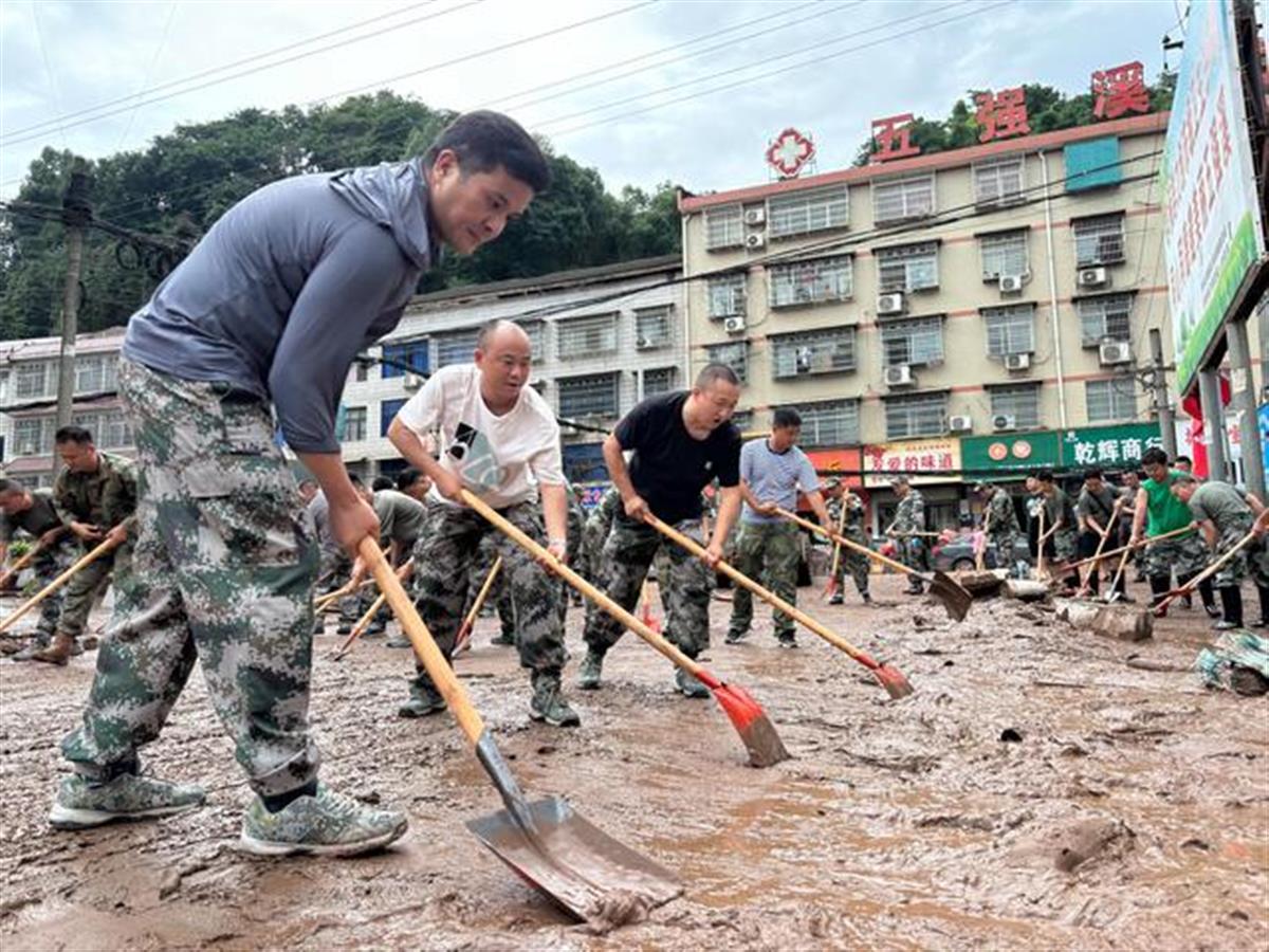 忙碌的人群中,还有“兄弟”乡镇的干部身影——10名来自百余公里之外沅陵县北溶乡的工作人员,和当地群众一起,手持铁锹、铲子等工具对淤泥和杂物进行初步清理。