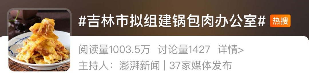 “吉林市拟组建锅包肉办公室”这一话题也冲上热搜。