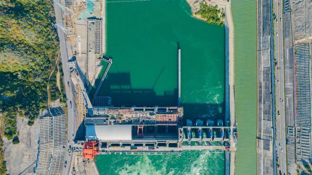 11月28日,在四川攀枝花,碧绿的江水穿过横亘在金沙江上的银江水电站大坝,奔流而下。近日,银江水电站导流明渠截流成功,标志着银江水电站蓄水发电指日可待。