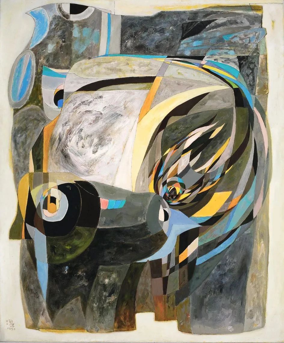 庞壔《青铜的启示——角》布面油画,85cm×110cm,1985年