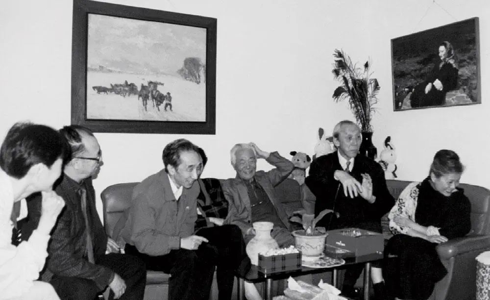 1995年,老学生为艾中信老师80诞辰祝寿,右一为庞壔