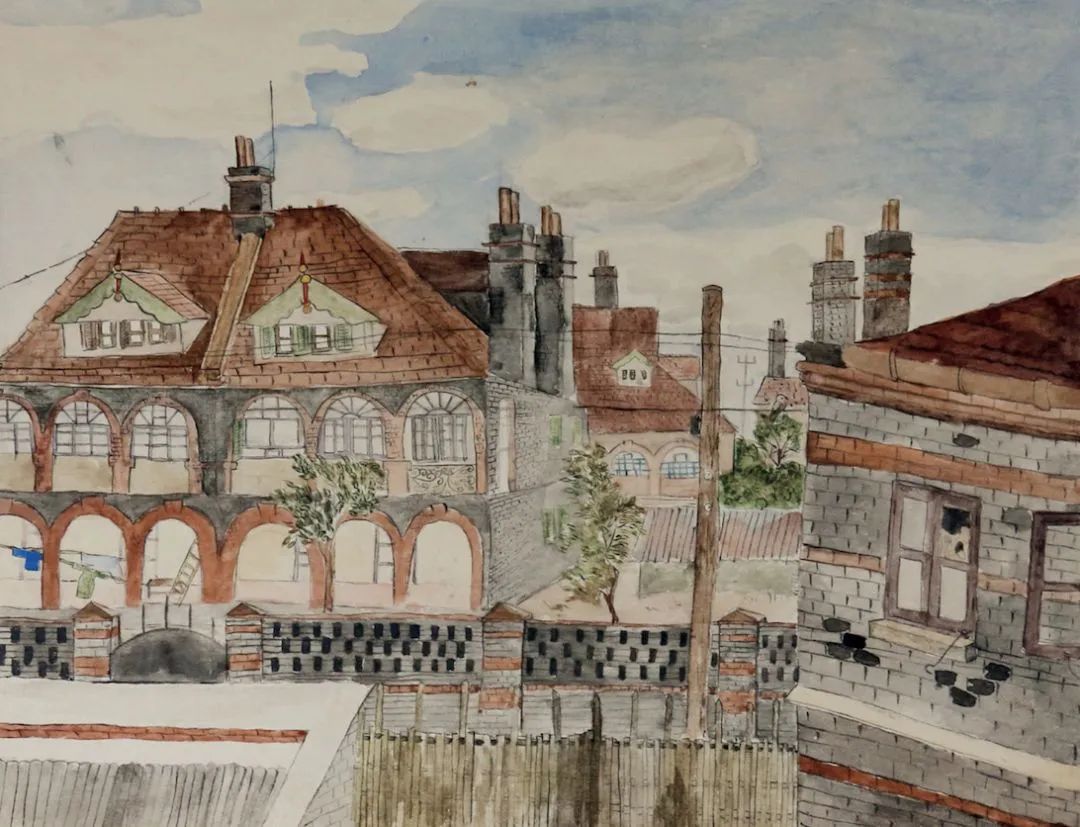 庞壔《窗外》纸本水彩,27×31cm,1947年