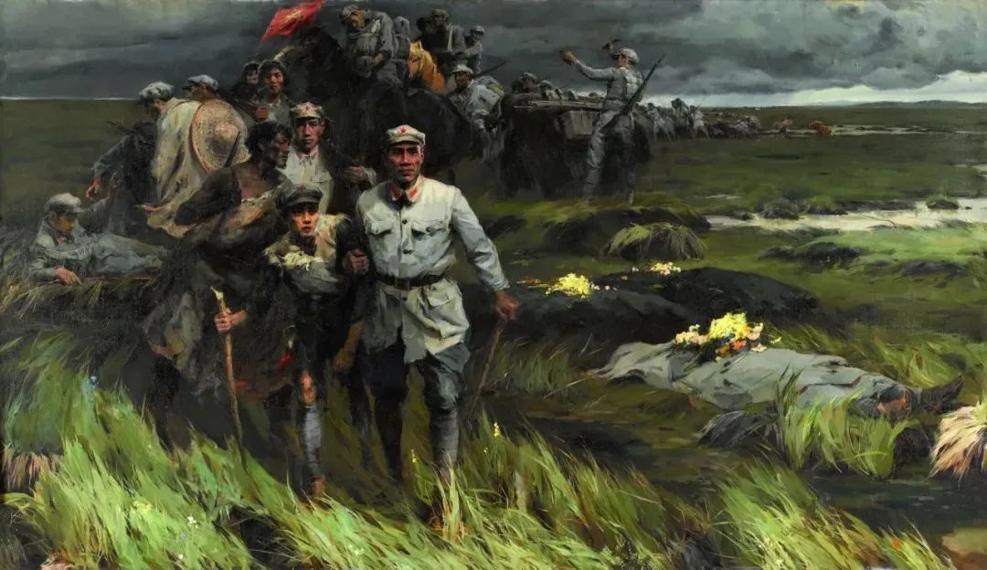 林岗、庞壔《峥嵘岁月(长征路上)》布面油彩,165x300cm,1979年,中国国家博物馆