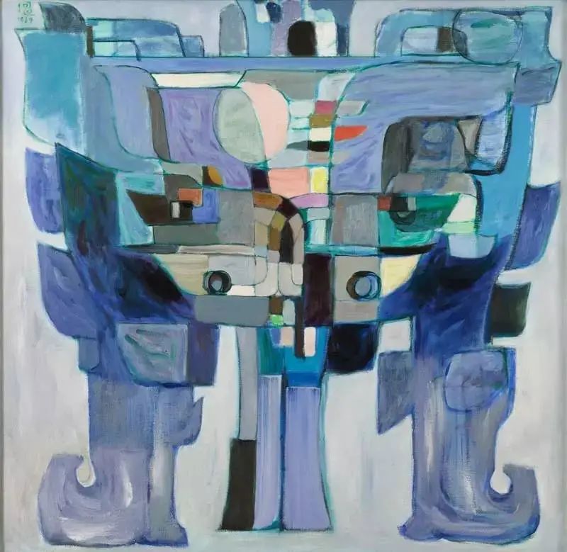 庞壔《青铜的启示——蓝调》布面油画,88.5cm×91.5cm,1989年