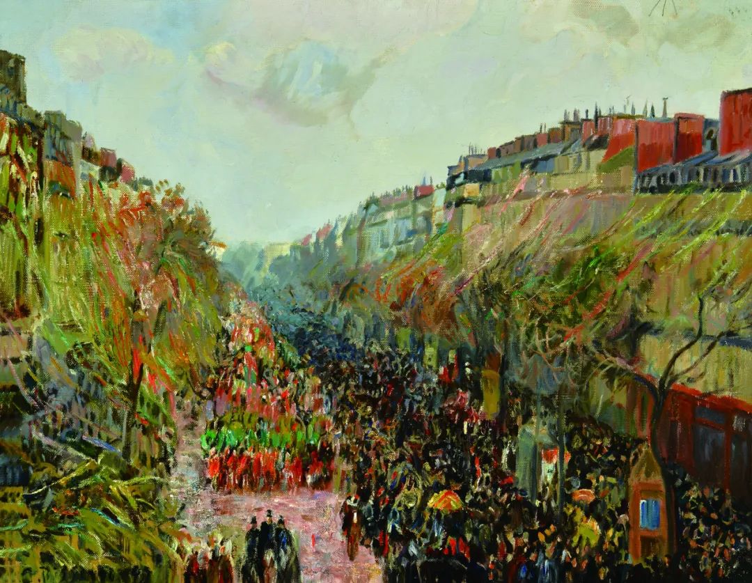 毕沙罗作庞涛临摹《蒙特玛德大街的旅行人群》布面油彩,78.5×62cm,1982年