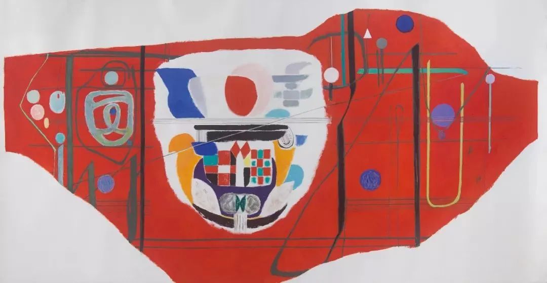 庞壔《色阶的变化——红调之二》纸本水粉、丝网印刷,134×262cm,2017年