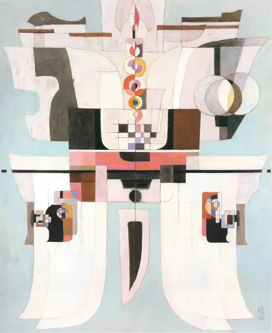 庞壔《青铜的启示―爵、斝No.3》布面油画、丙烯,91.4×75.7cm,1991年