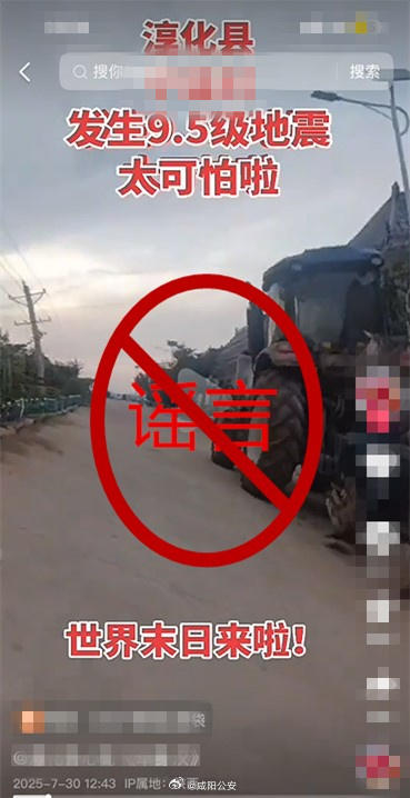 近日,淳化县公安局网安大队在网上巡查时发现,辖区方里镇某网民在两家短视频平台发布了一则 “淳化县某村发生9.5级地震” 的不实信息。经核查,此视频系该网民为博取眼球、赚取流量,使用特效制作的虚假内容。