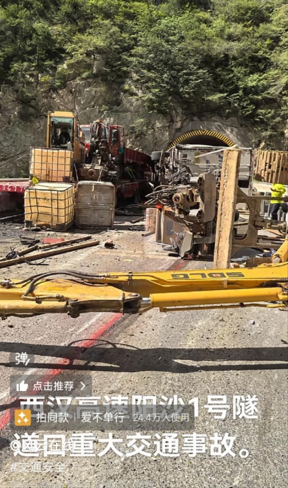8月16日,有网友发布视频称,陕西西安境内西汉高速阳沙一号隧道发生交通事故,造成交通堵塞,有网友称堵车超4小时。17日,西安市交警高速大队回复极目新闻,拥堵已于当晚8时疏通,事故未造成人员伤亡。