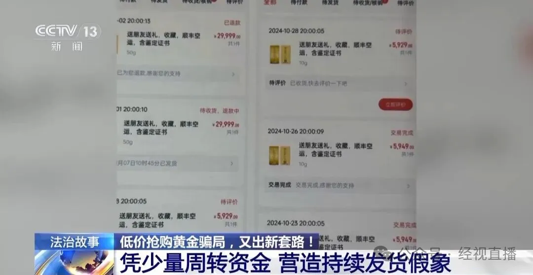骗子精心设计了一套“低价黄金限时抢购”的模式:每天仅开放两个时段供用户下单,而且买家收到的确实是真黄金。这种低价、稀缺、真实履约的组合,迅速赢得了受害者的信任。