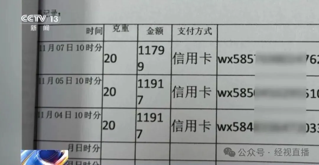 张女士:因为它很便宜,要是每天都去买的话,一个月可以赚好几万块钱,甚至买的多的一个月十几万都可以赚。比如说一克低于市场价30块钱,我一次性买100克的话就是3000块钱,回收也是市场价回收,我买1000克不就能赚3万块钱一个月。