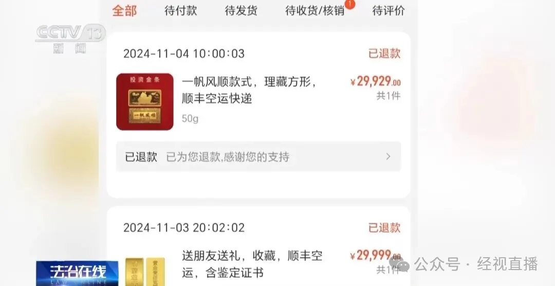 直到2024年10月底,骗子突然放开抢购限制,之前很难抢购到50克、100克、200克等大克数金条,此时变得很容易抢到。在一周的时间里,骗子集中收取了3300余万元货款,完成了最后一拨“收割”。