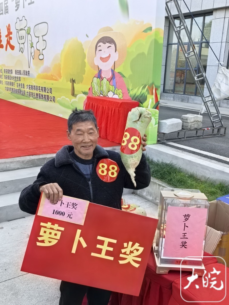 大皖新闻讯“88号,六斤一两,登记一下。”12月6日上午,在六安市裕安区新安镇,由该镇党委政府主办的第四届“萝卜王”评选大赛火热进行,大皖新闻记者全程观赛。最后,参赛的88号萝卜以6.1斤的重量“称王”,本届“萝卜王”出自村民鲍远全之手。
