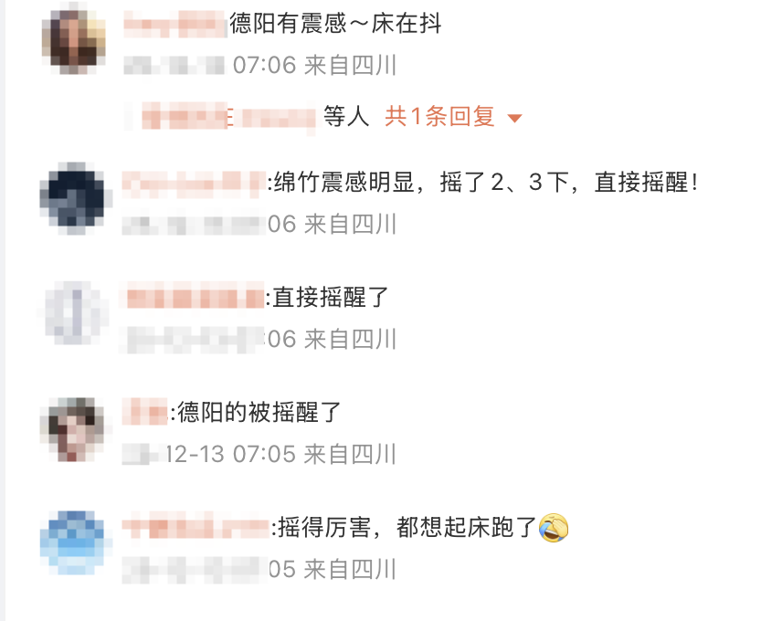 四川多地网友反映有震感: