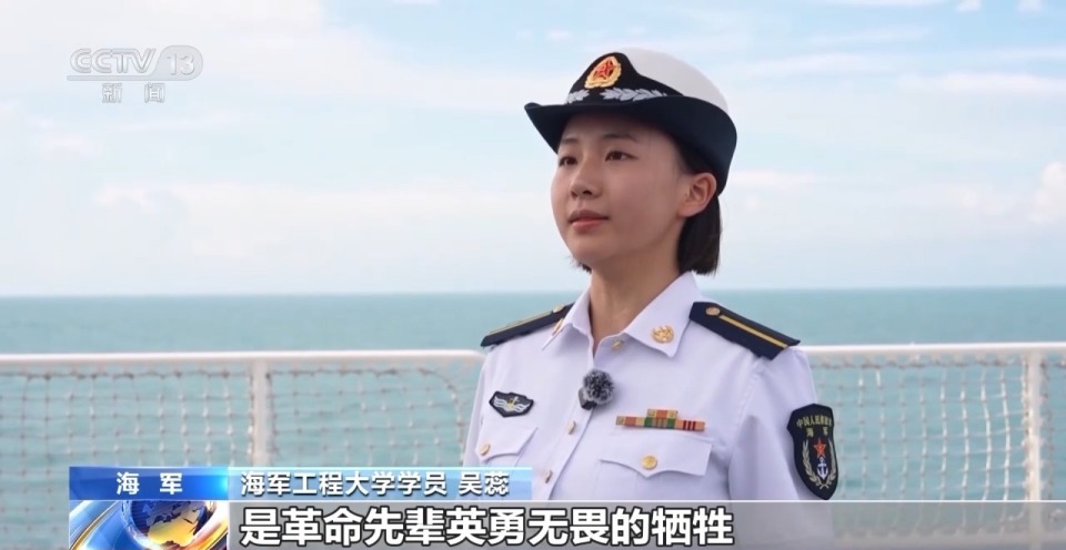 海军工程大学学员吴蕊:这次仪式让我感触良深,是革命先辈英勇无畏的牺牲才换来了今日的和平安宁,作为人民海军的新生力量,我们将继承先辈遗志,守家国安宁,护万里海疆!