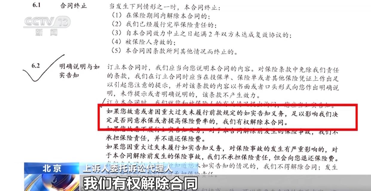 上诉人委托诉讼代理人:第十五页6.2条明确说明与如实告知,它里面有明确的说明,如果您因故意或者重大过失未履行前款的如实告知义务,足以影响我们决定是否同意承保或者提高保险费率的,我们有权解除合同。