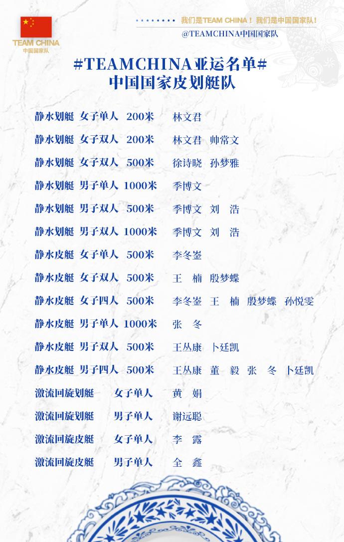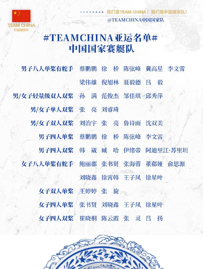中国国家赛艇队、中国国家皮划艇队亚运名单公布
