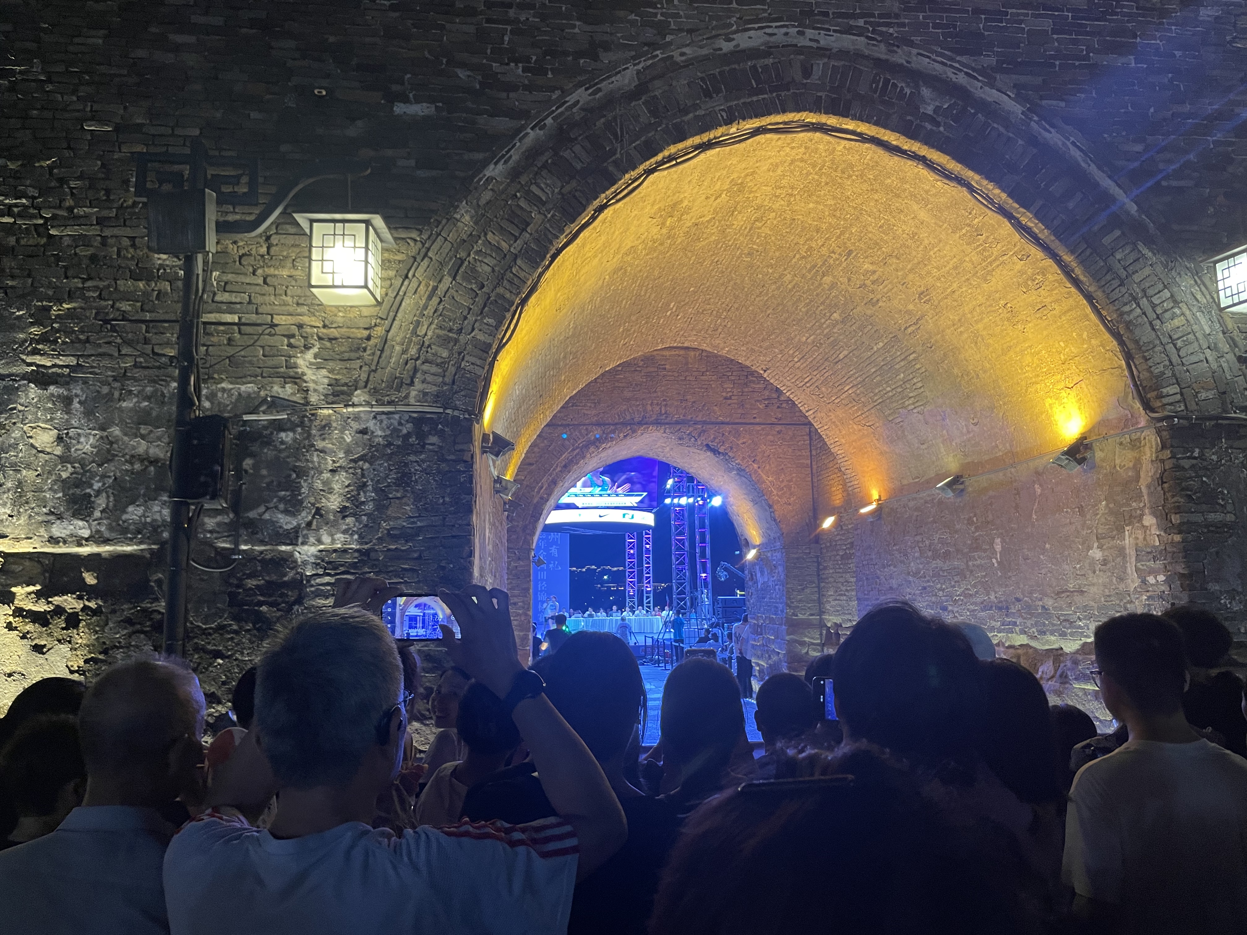 现场DJ循环播放着节奏感强烈的流行音乐,加上古城墙上的光影灯光秀,让不少只是打算在这个5A级景区赏玩的游客都不自觉地驻足停留在赛场边上。