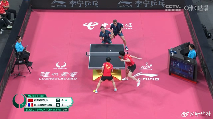 祝贺!中国混双组合王楚钦、孙颖莎3比0战胜法国组合