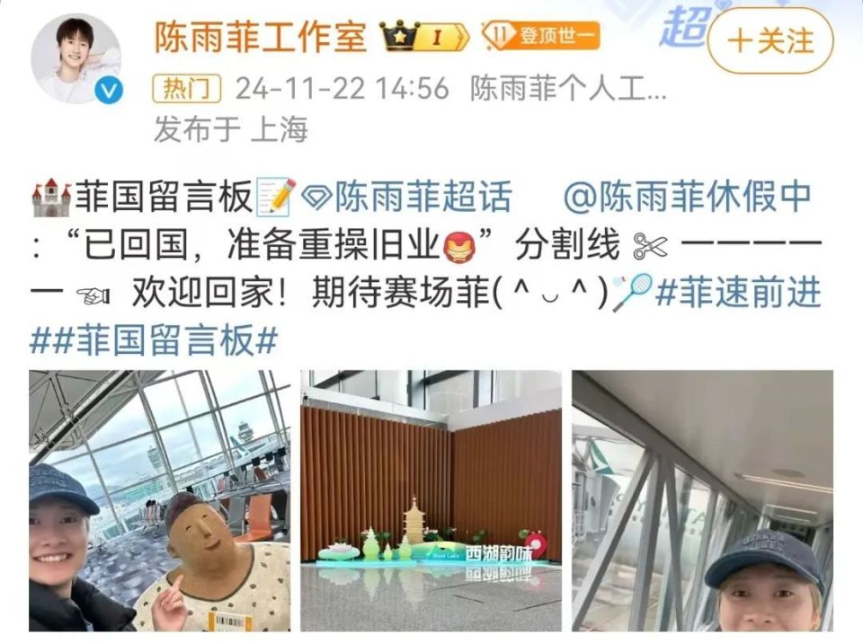 如果说前面的表述还不明确的话,最后一句“勇敢的菲享受完世界,即将杀回羽坛”则非常明确地确认了陈雨菲即将回归赛场。
