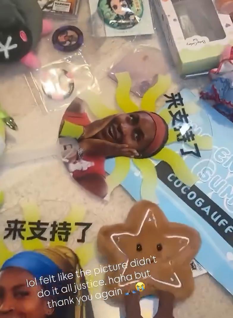 高芙在个人社交平台上曾发布视频,展示在中国赛季中得到的粉丝礼物,除了各种玩偶、表情包周边,“果王”锦旗也赫然在列。