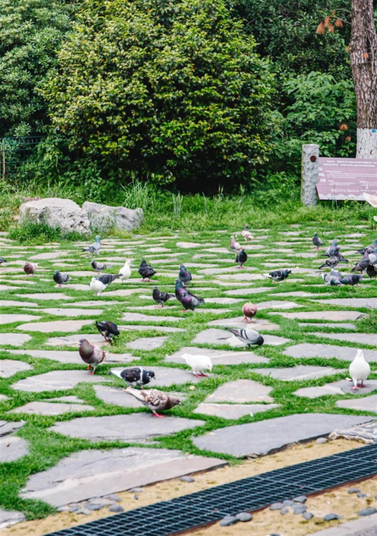 草坪上800多只鸽子嬉戏打闹,别开生面,一袋鸽食就能收获成倍的快乐。