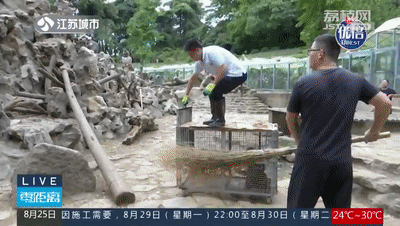 8月24日上午7点多钟,南京的气温舒适凉爽,园方选择在此时将猕猴放归猴山。为了让它能更好地融入,园方还在一些猕猴可能会逃跑的点位,比如围墙旁、树旁,安排了相关人员。