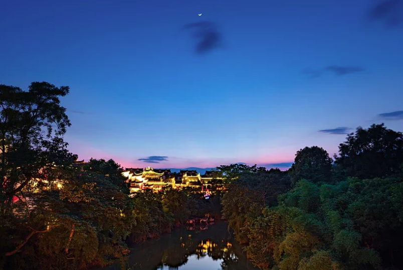 每当夜幕降临,河岸和古建筑的景观灯亮起,便可以静静站在古城的浮桥上感受迎面而来的晚风,融化在这古城的风韵之中。