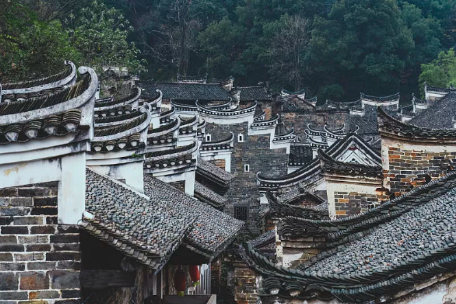 沿着青石板路深入古村,二百余栋的古建筑保存完好。这些青砖筑成的建筑多为明清时期所建,高大的风火墙、起伏变化的白色展带以及精妙绝伦的马头墙,构成了这里的古韵。
