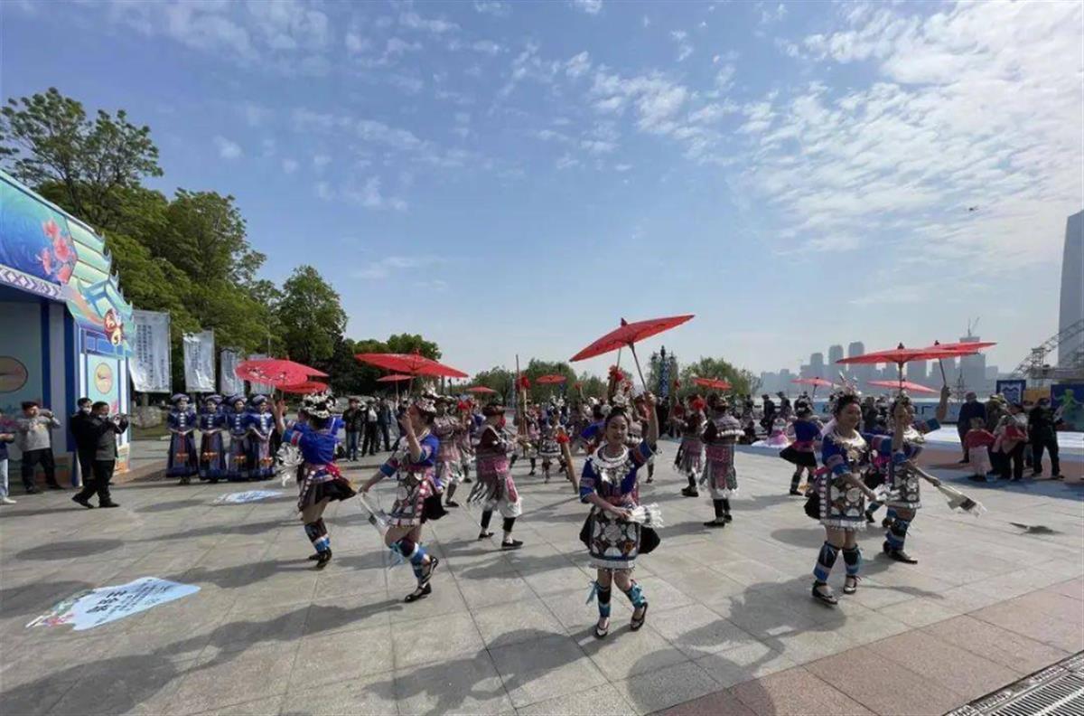 国家级非遗项目那坡壮族民歌《壮美春江水》、国家级非遗项目瑶族蝴蝶歌《瑶歌一唱亲上亲》、新民歌《春暖花开踏歌来》、歌曲《一路歌唱》的悠扬旋律把汉口江滩变成了歌的海洋,仿佛把现场观众带到了“三月三”壮族歌圩的现场。